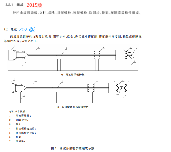 GB/T 31439.1-2025《波形梁钢护栏 第1部分:两波形梁钢护栏》于2025年8月29日发布,计划于2026年3月1日实施,替代2015规范公路交通工程中两波形梁钢护栏的技术要求与安全性能。