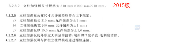 d) 删除了钢管立柱加强板及相关技术要求(见 2015 年版的 3.2.3.2、4.2.2.5~4.2.2.7);