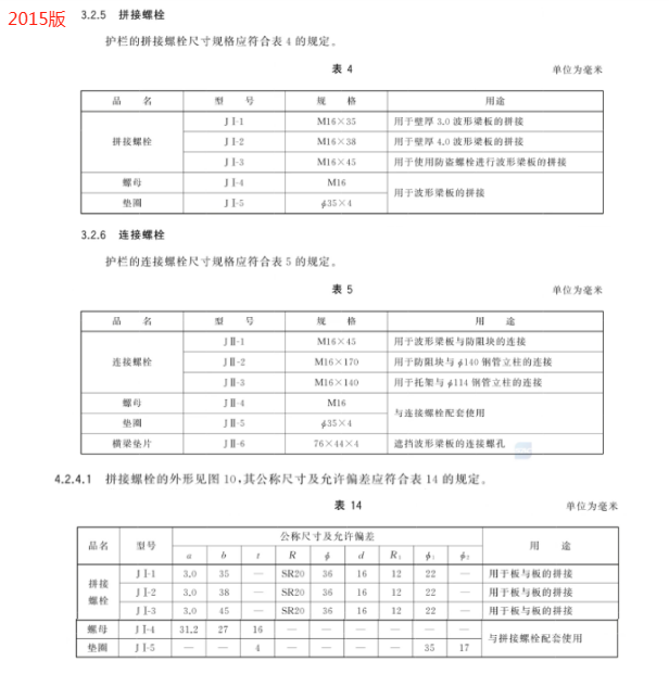 e) 更改了拼接螺栓连接副和连接螺栓连接副的用途、规格、公称尺寸及允许偏差(见 4.3.4、4.3.5、5.2.4.1、5.2.4.3、5.2.5.1 和 5.2.5.3,2015 年版的 3.2.5、3.2.6、4.2.4.1 和 4.2.5.1);