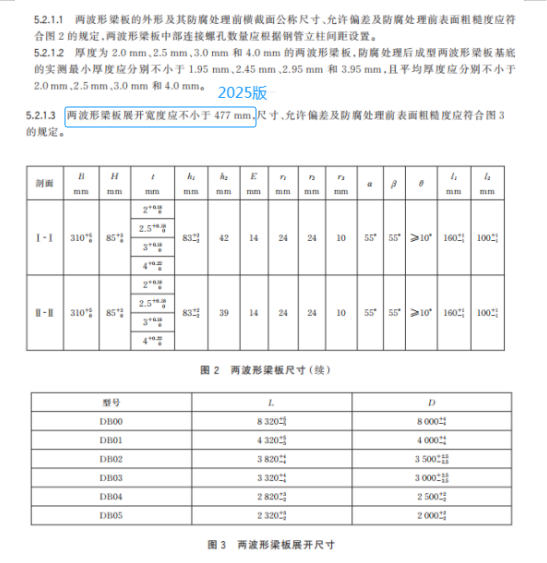k) 更改了两波形梁板外形图、横截面公称尺寸、展开尺寸及允许偏差(见 5.2.1.1~5.2.1.3,2015 版的 4.2.1.1、4.2.1.2);