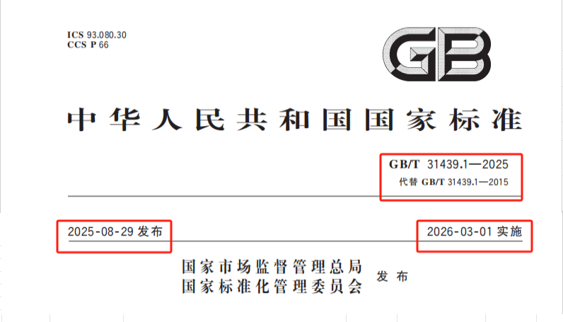 GB/T 31439.1-2025《波形梁钢护栏 第1部分:两波形梁钢护栏》于2025年8月29日发布,计划于2026年3月1日实施,替代2015版标准,规范公路交通工程中两波形梁钢护栏的技术要求与安全性能。