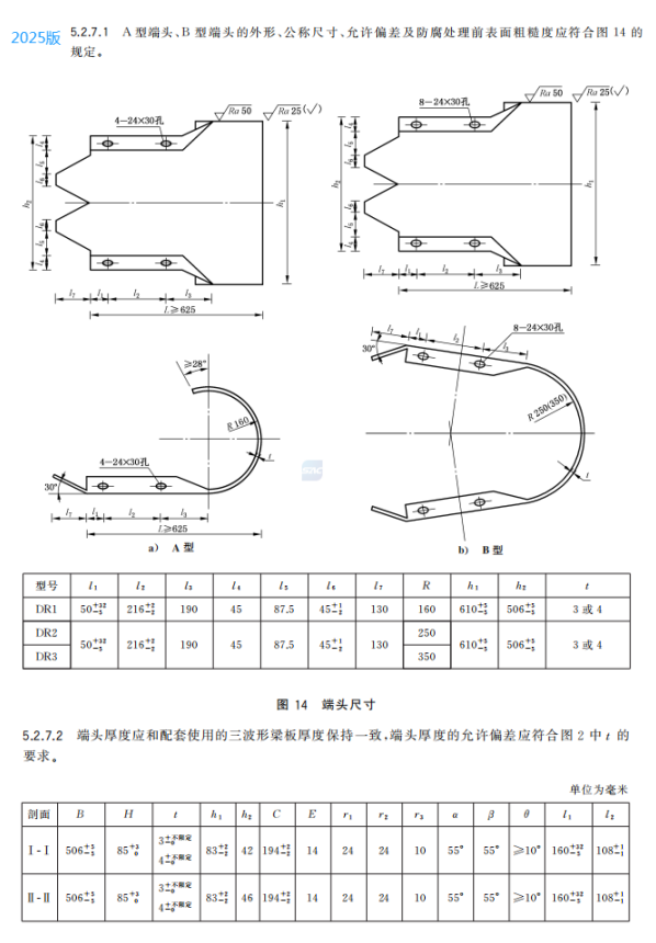 t) 增加了安装在半径较小弯道三波形梁板加工工艺要求(见5.4.5);