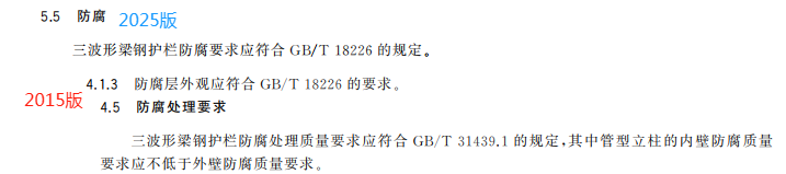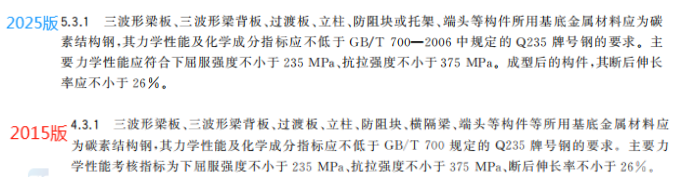 r) 更改了三波形梁板、三波形梁背板、过渡板、立柱、防阻块或托架、端头等构件的材质要求(见5.3.1,2015年版的4.3.1);
