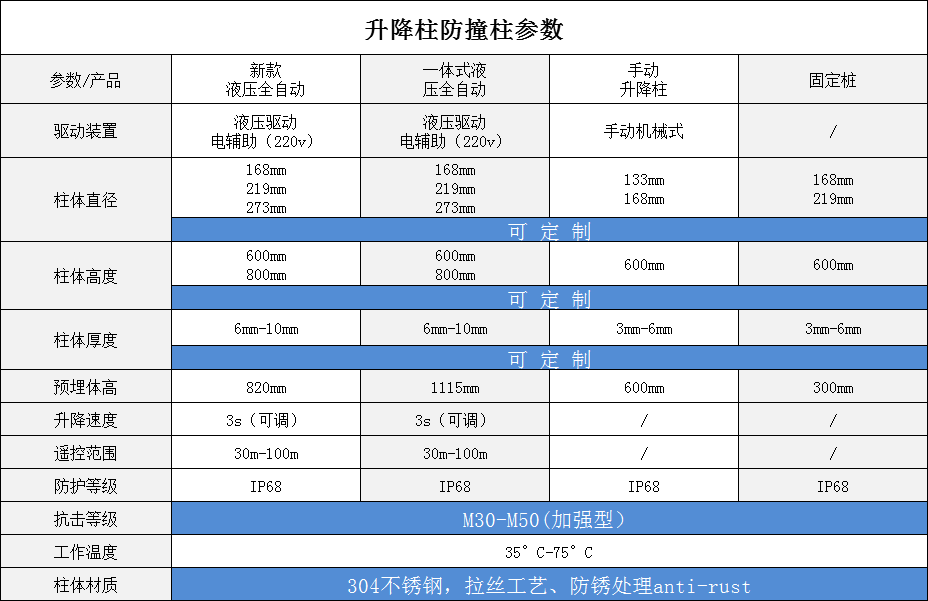 液压升降柱主要用于控制道路车辆的通行,可以与道闸等配套使用,也可以单独使用,其主要是为敏感区域防止非允许车辆强行闯入而专门设计研发的,具有很高的实用性、可靠性及安全性。