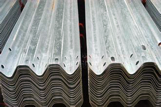 主要用于公路车道的隔离防护 波形护栏实用新型涉及一种公路中央分隔带开口处用组合型波形板活动式钢护栏,该护栏由两片波形钢护栏板及两者之间固定夹放的两根立柱构成,两根立柱固定夹装在两片波形钢护栏板之间。在公路正常营运时,该护栏利用插拔立柱可方便地插入开口处预先设置的插拔孔内,起到隔离和防护作用,同时与公路外边上的护栏带相呼应,整齐划一,美观配套。车辆对其碰撞时,由于波形钢护栏板有良好的耐撞性能和吸收能量的作用,既不容易被撞毁,同时又可对车辆和司乘人员起到很好的保护作用。当路面维修或其它原因需要并通时,可方便地把开口处的各组护栏立柱拔出移走,开辟通道,便于车辆通行。 波形梁护栏是半刚性护栏的主要形式,它是一种以波纹状钢护栏板相互拼接并由主柱支撑的连续结构。它利用土基、立柱、横梁的变形来吸收碰撞能量,并迫使失控车辆改变方向,回复到正常的行驶方向,防止车辆冲出路外,以保护车辆和乘客,减少事故造成的损失。波形梁护栏钢柔相兼,具有较强的吸收碰撞能量的能力,具有较好的视线诱导功能,能与道路线形相协调,外形美观,可在小半径弯道上使用,损坏处容易更换。组合波形梁护栏可在窄中央分隔带上使用。对于车辆越出路(桥)外,有可能造成严重后果的区段,可选择加强波形梁护栏。